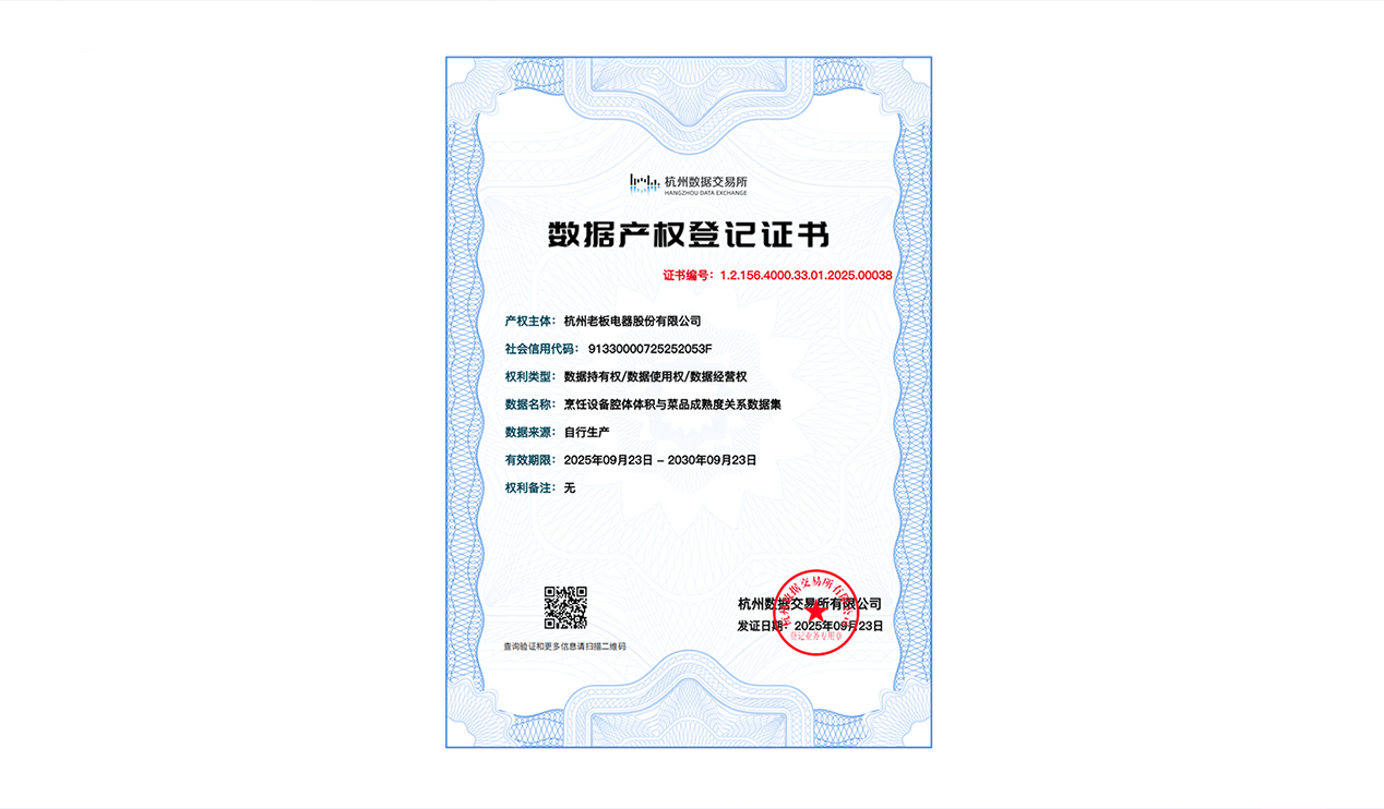 MILAN.COM获得厨电烹饪领域首张数据产权登记证书
