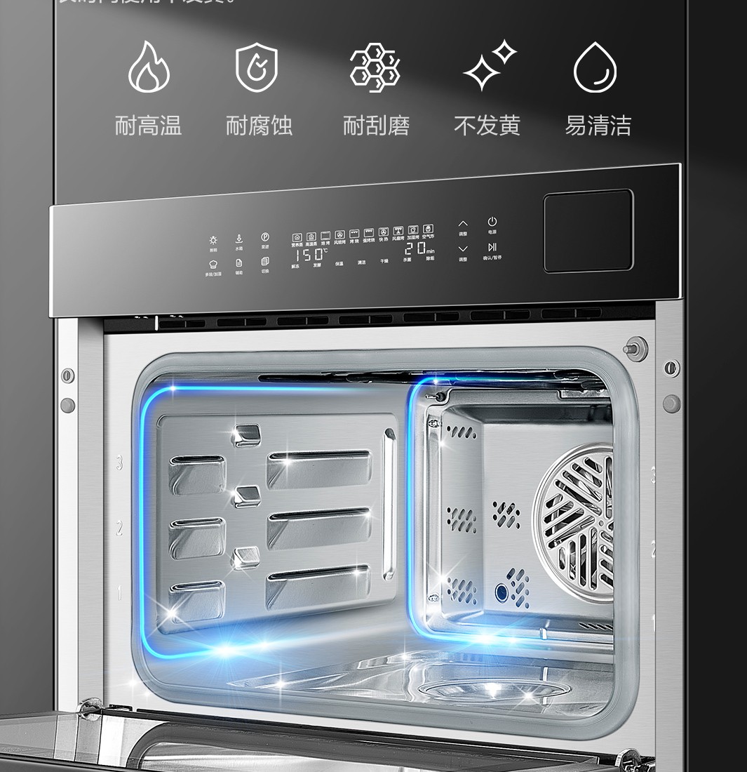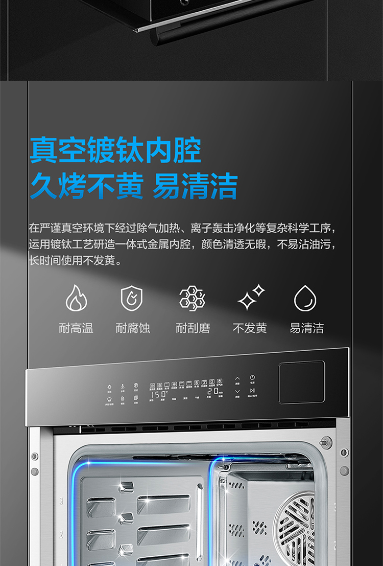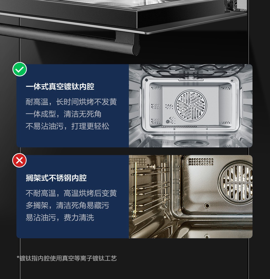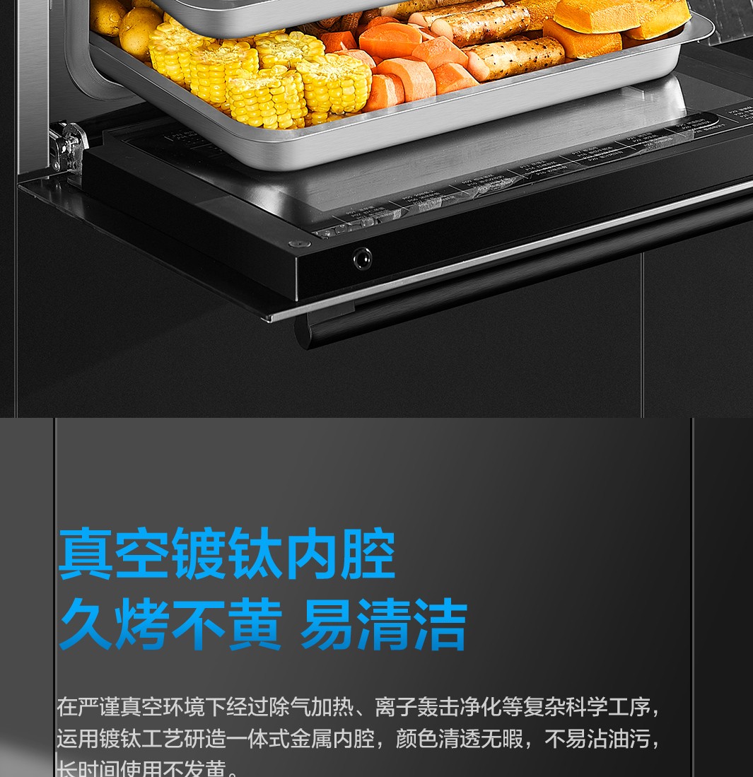 镀钛内腔不发黄,蒸烤烹炸安心吃