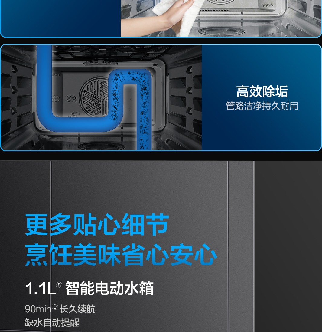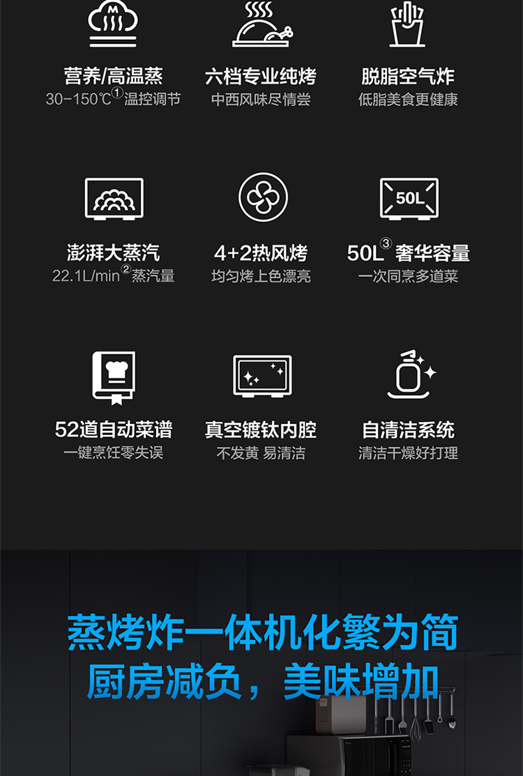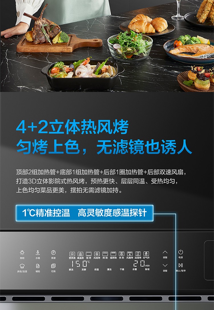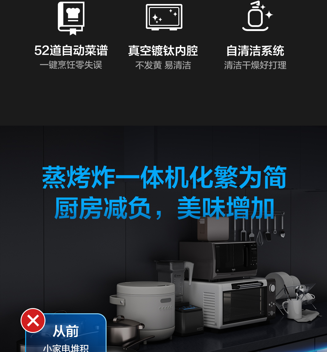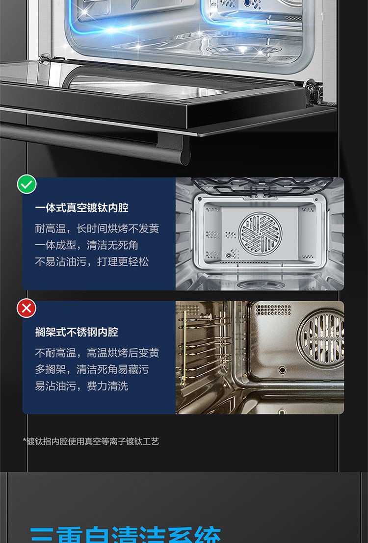镀钛内腔不发黄,蒸烤烹炸安心吃
