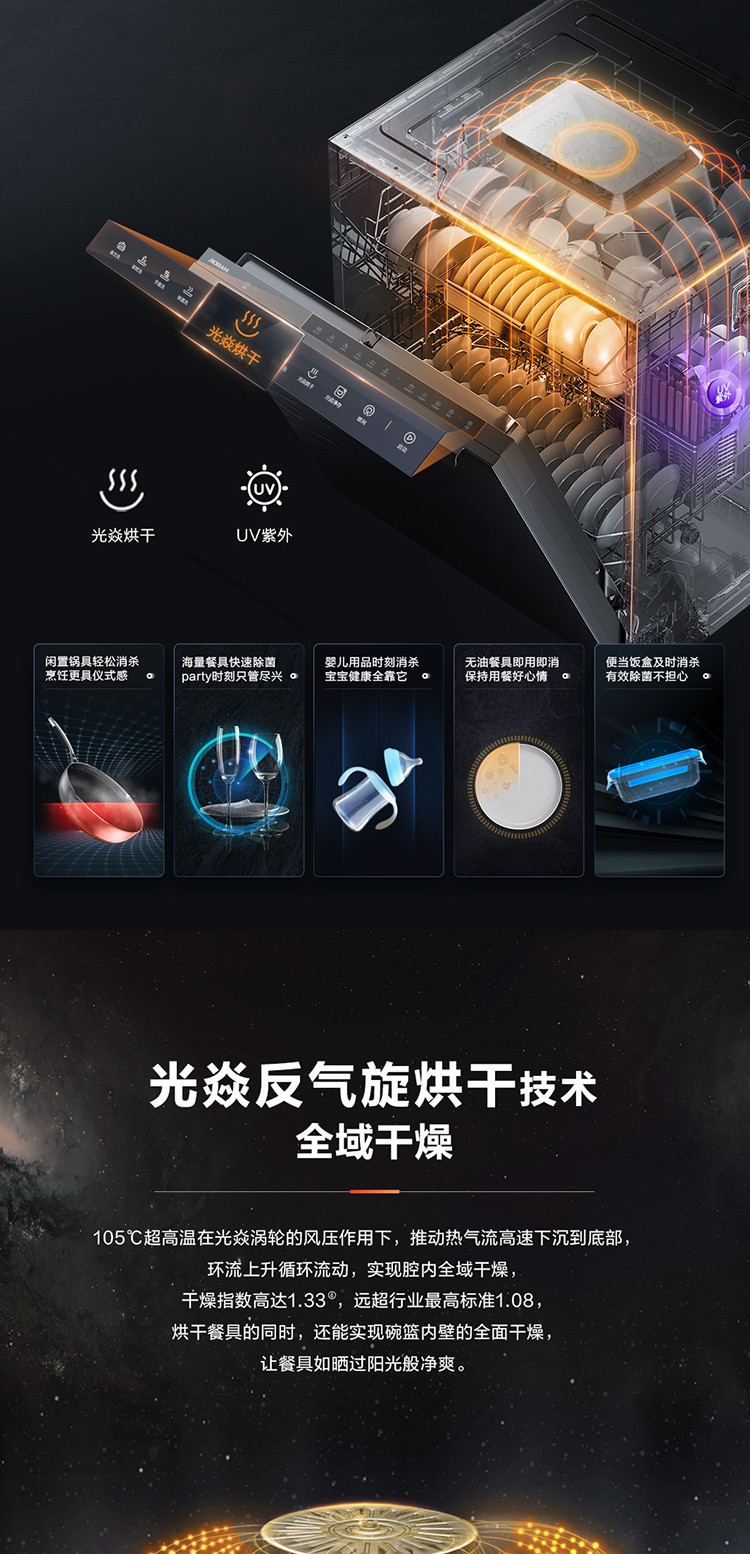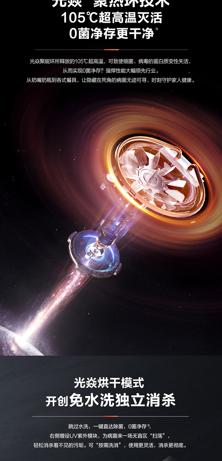 105℃光焱超沸点消杀科技,能独立消杀的0菌洗碗机