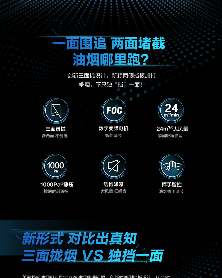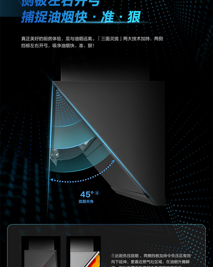 拢烟多两面,油烟不侧逃