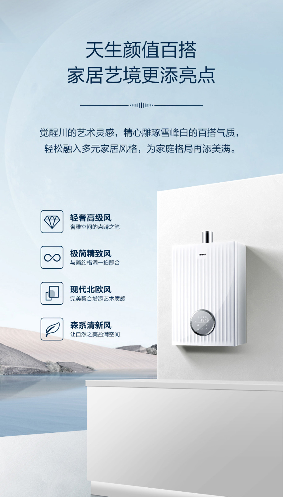 天生好看、ACC燃力控制技术、三大用水模式、全家恒温、无忧用水、中国美术学院联合推出款