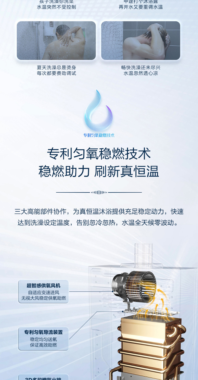专利匀氧稳燃技术、出水更快更稳更恒温、 三大用水模式、中国美术学院联合推出款