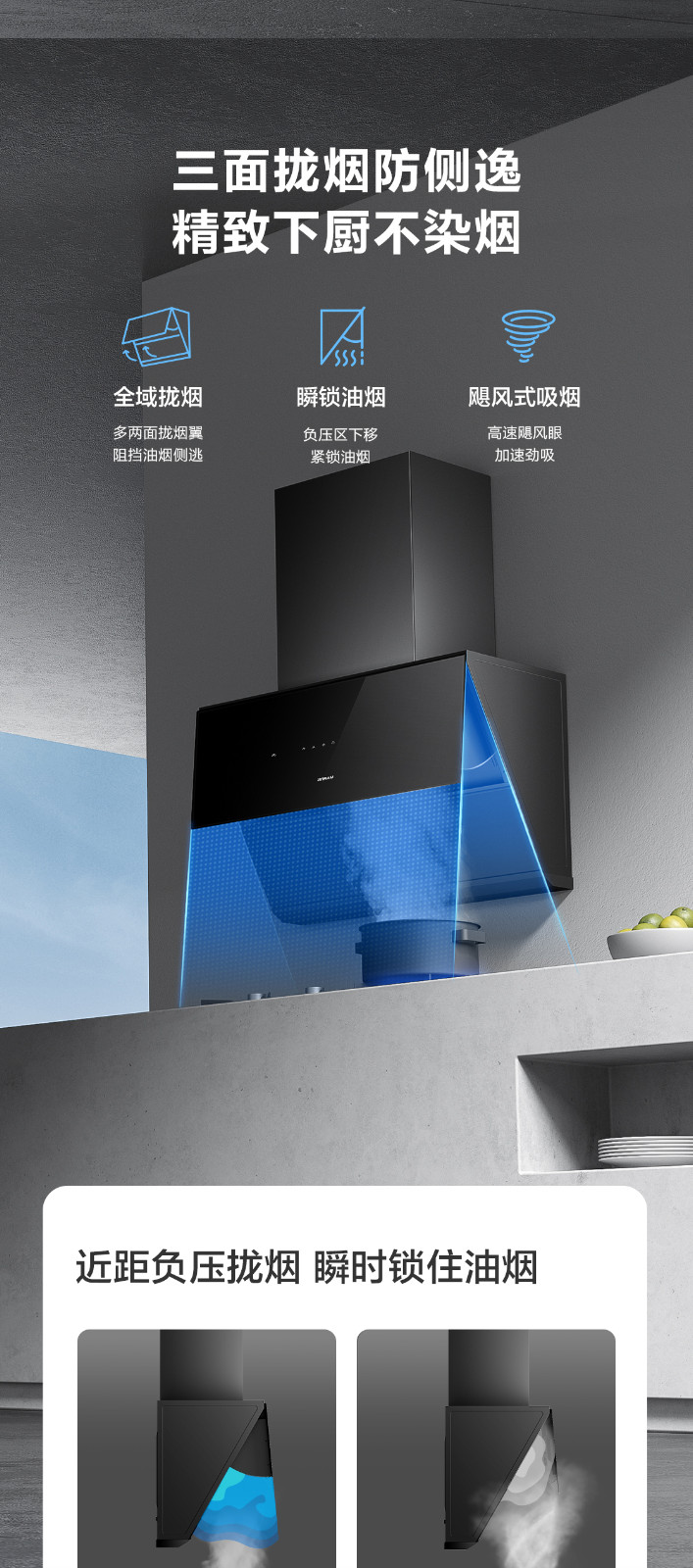 拢烟多两面,油烟不侧逃