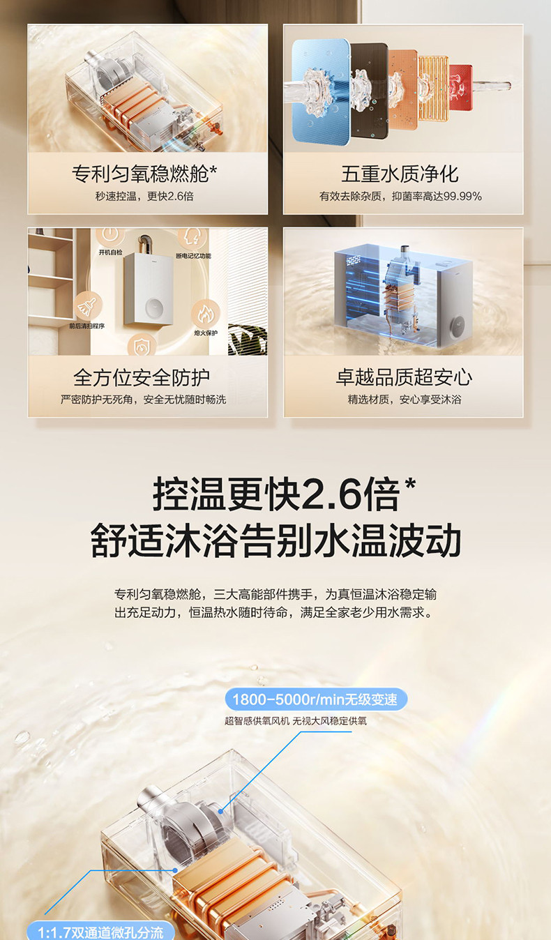 专利匀氧稳燃舱,秒速控温更快2.6倍